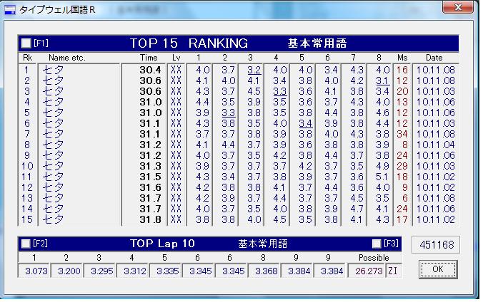この記録見て分かるとおり、ほとんど最後のほうが緊張と焦りのせいでペースが遅くなってるのが分かりますね